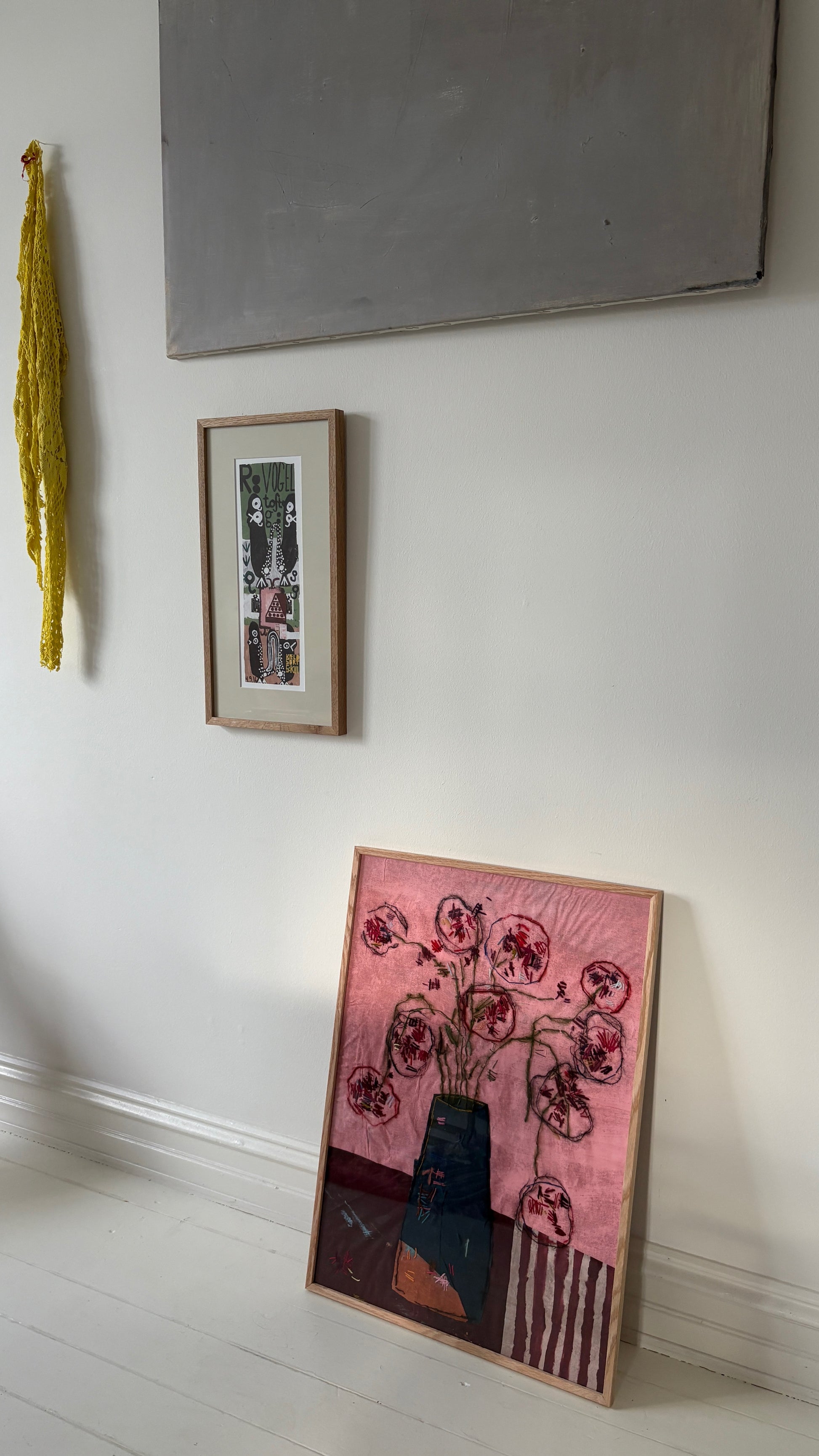 Embroidery, acrylics