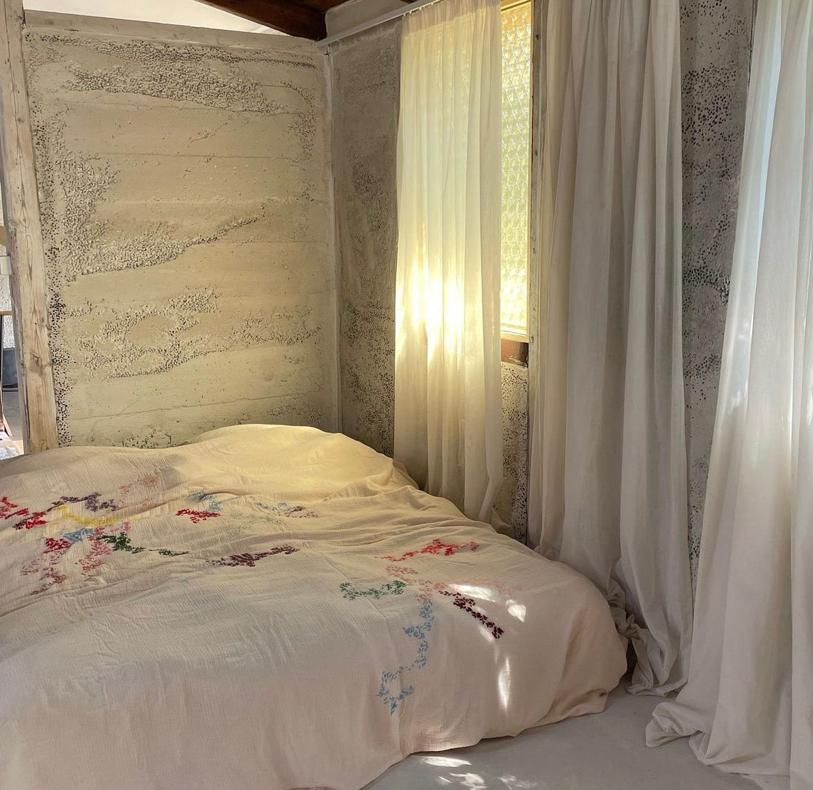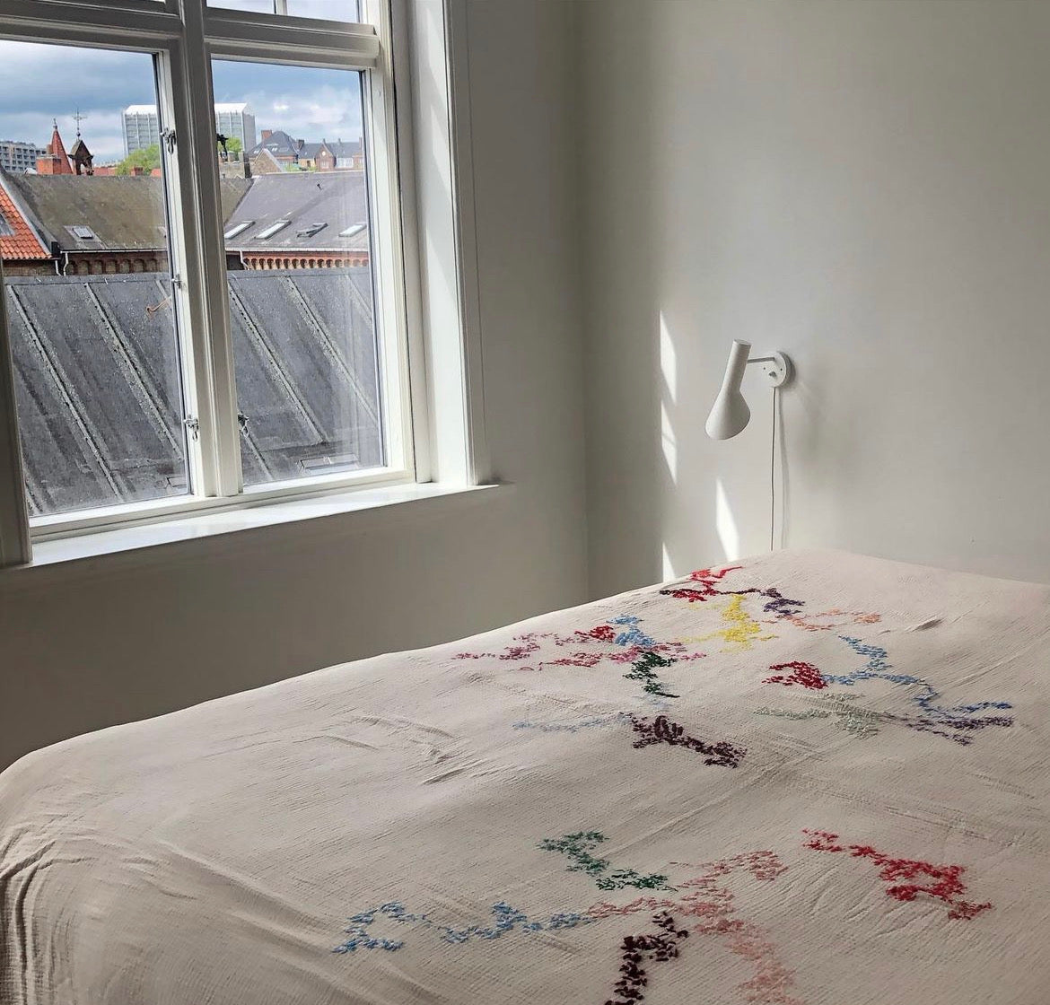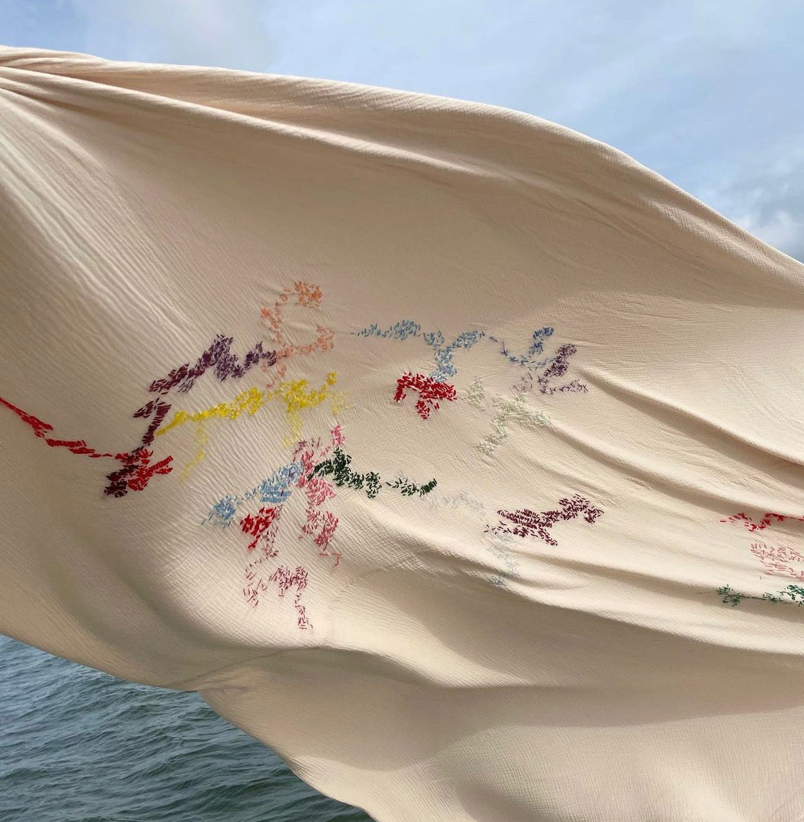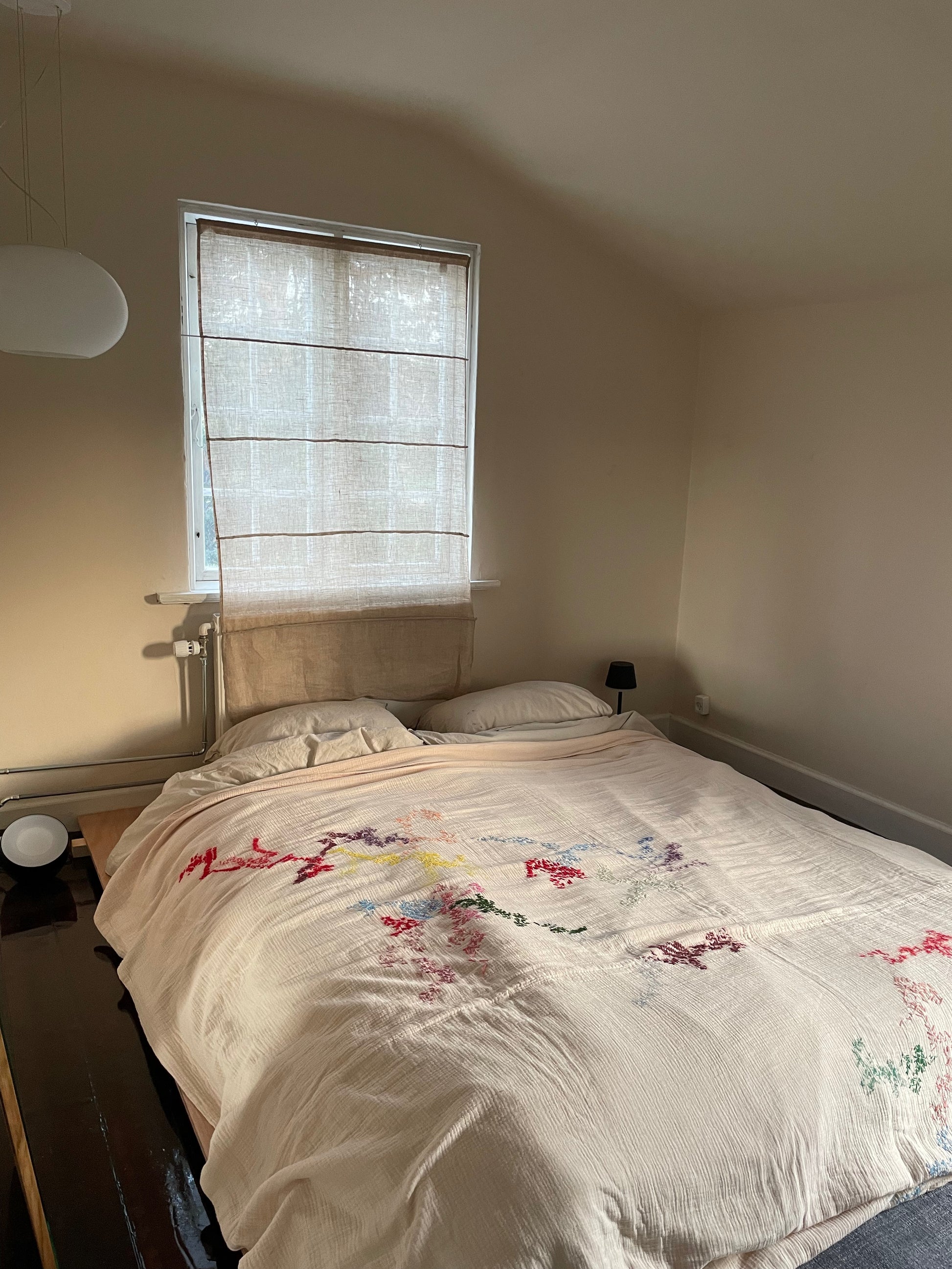 The bedspread is made from offwhite cotton with hand embroidered artwork applied. Each piece is carefully created by hand with love and personality and is a unique one of a kind.