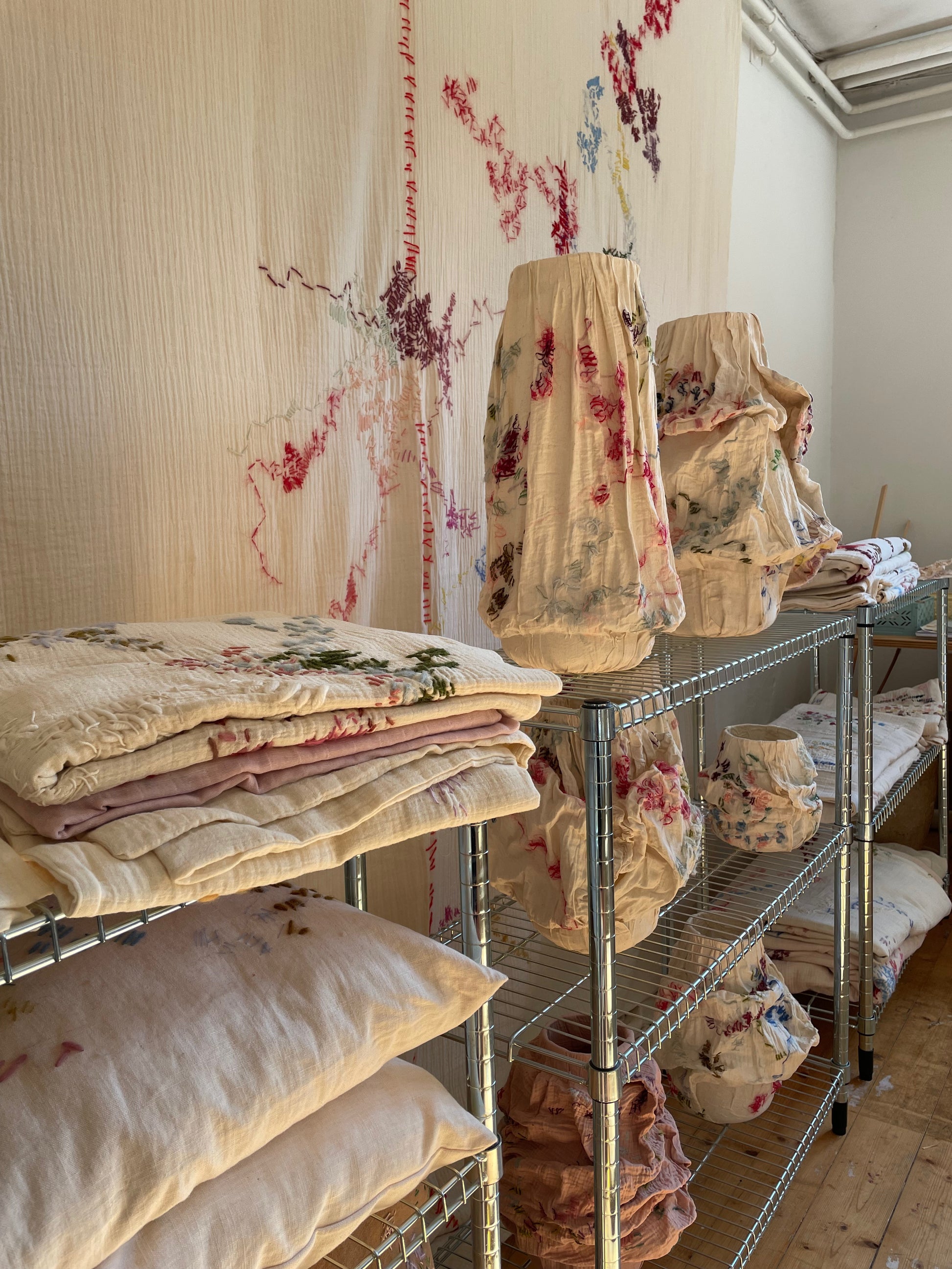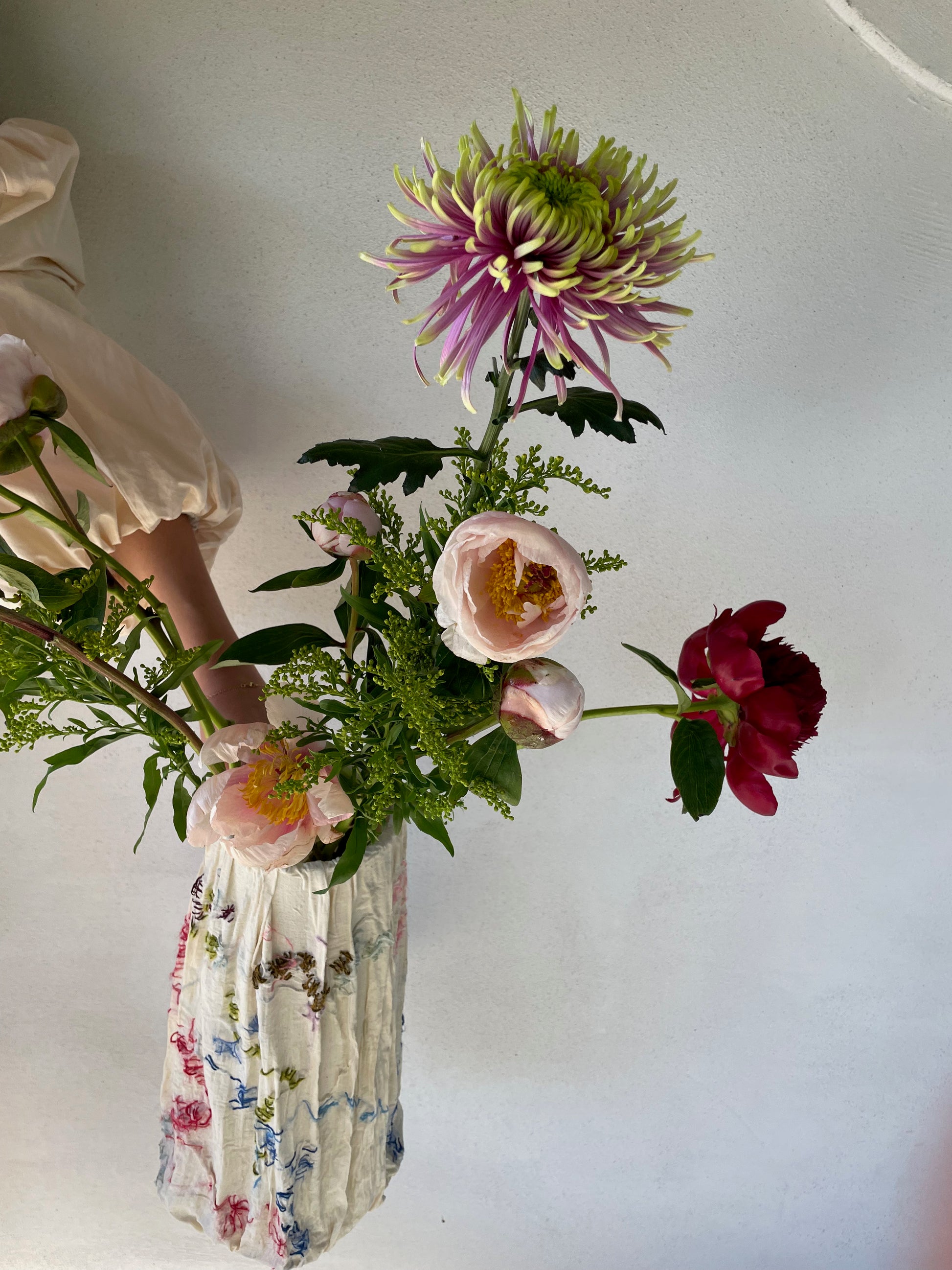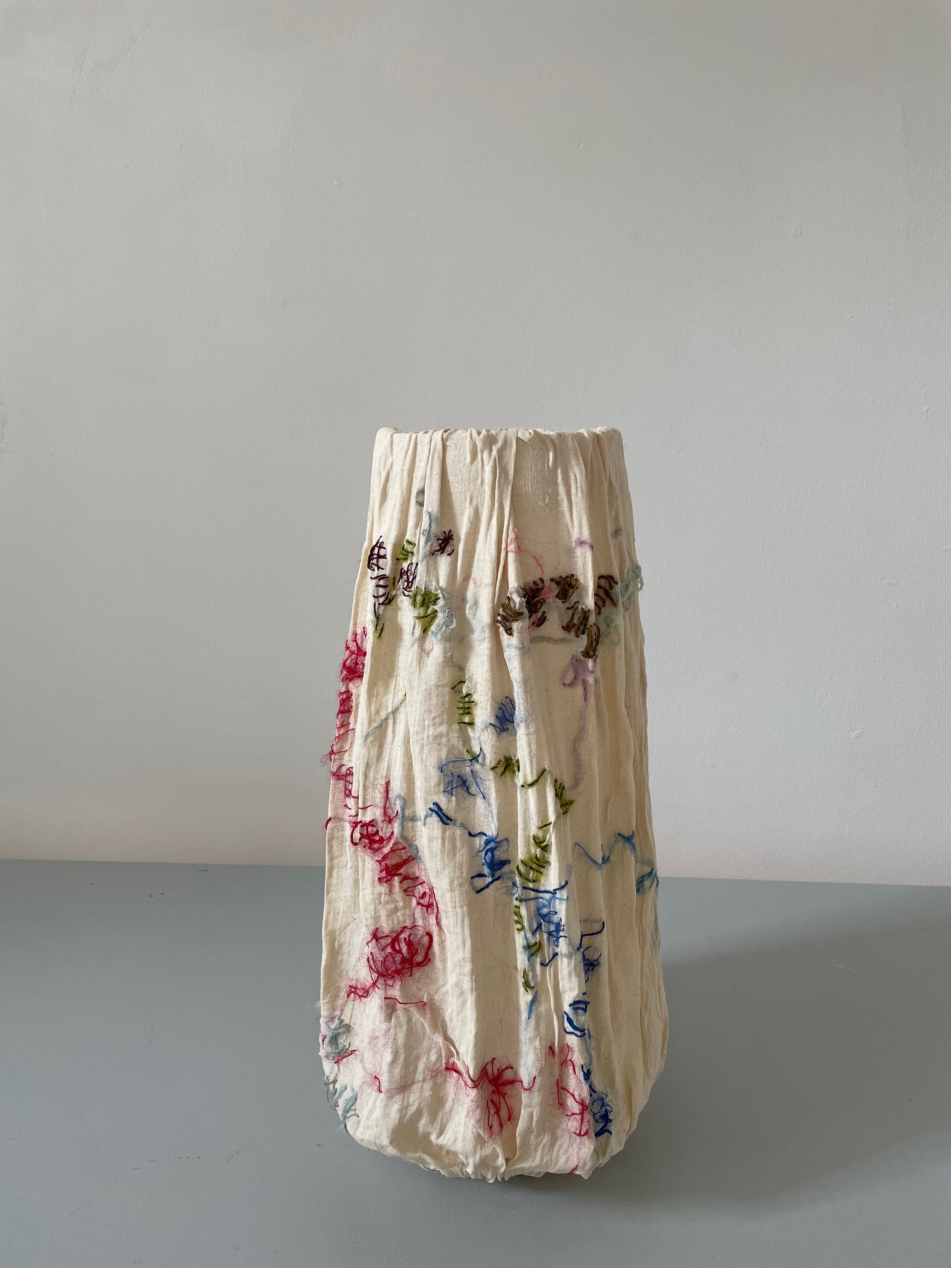 The Large Slim Vase is a sculptural vase. Hand embroidered on textile and with glass inside. Fully functional as a vase to carry flowers with water. But might as well be used as a sculptural element for the home. Each piece is carefully created by hand with precision and personality and is a unique one of a kind.