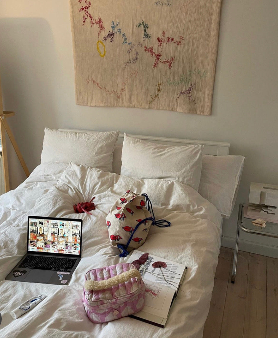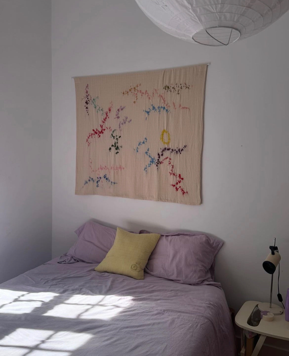The wall hanging is a piece of art made on cotton with hand embroidered artwork applied. Each piece is carefully created by hand with love and personality and is a unique one of a kind.