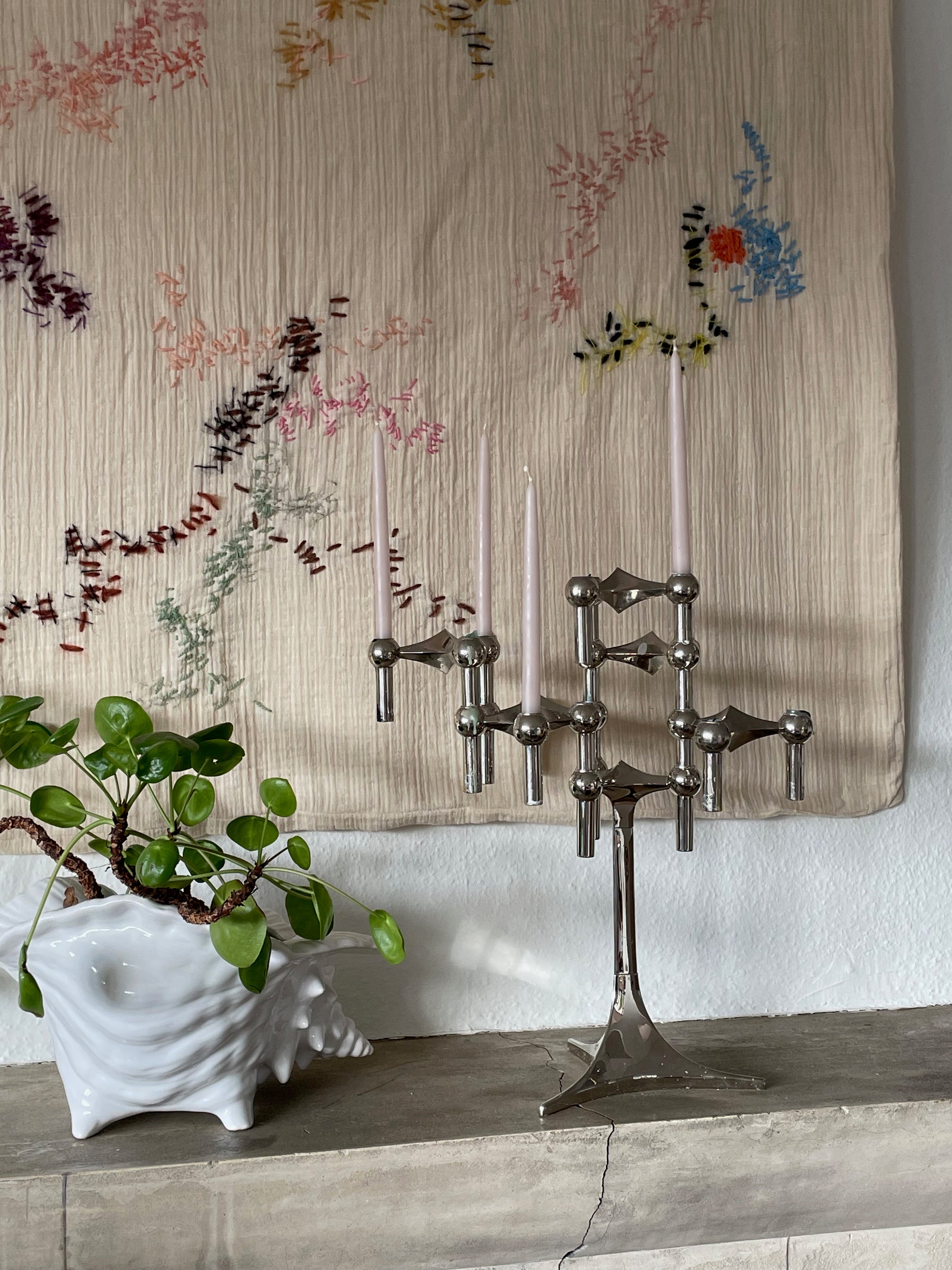 This wall hanging is a piece of art made on cotton with hand embroidered artwork applied. Each piece is carefully created by hand with love and personality and is a unique one of a kind.